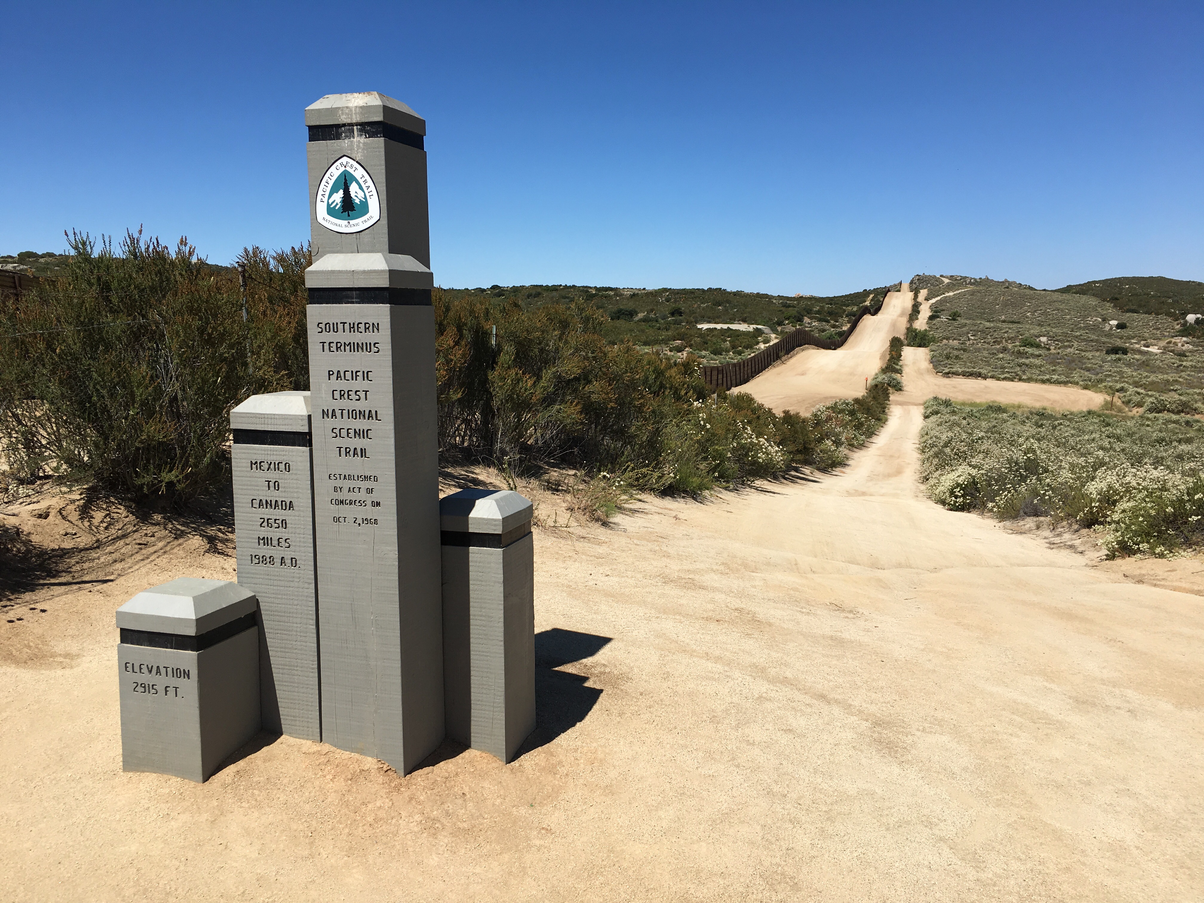 První zastávka na dnešní cestě má moc pěkný a stručný název: Pacific Crest National Scenic Trail – Southern Terminus. Tenhle Trail je jeden z nejdelších a nejznámějších v USA. Začíná někde na severu u kanadských hranic a končí právě zde, na mexické hranici. Když jsme v roce 2015 šli Naches Peak Loop Trail okolo Mt. Rainier, Pacific Crest Trail byl asi na 2 km součástí naší cesty. Takže tuhle zastávku u mexické zdi (na kterou byl taky impzantní pohled) jsem prostě nemohl vynechat. Více o PCT zde.