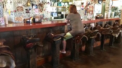 Zastávka v Tortilla Flat na malém obědě v místním tradičním saloonu. Posezení na baru v sedlech, místo stoliček, zažitek jen umocňuje 🙂