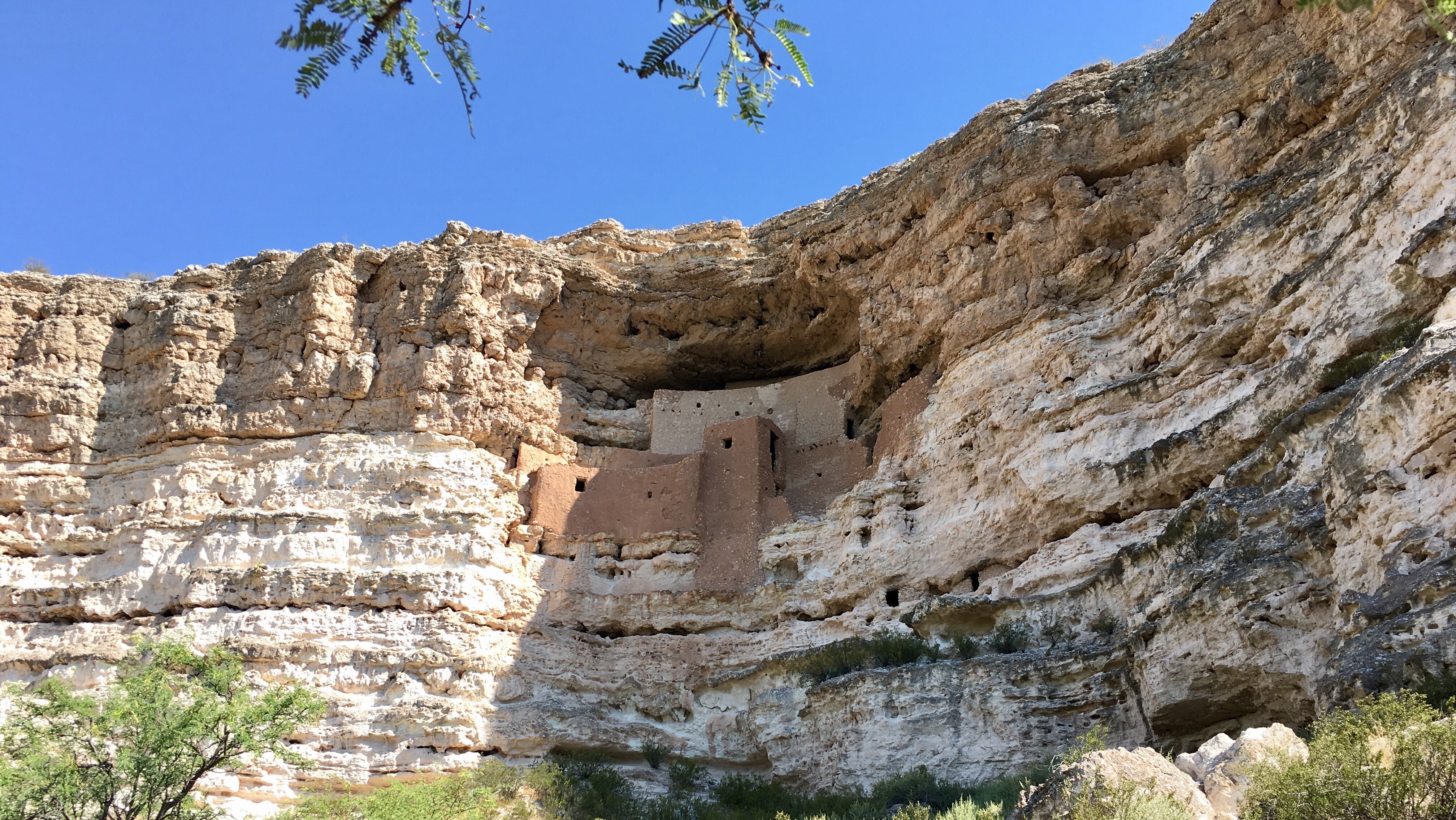 Montezuma Castle National Monument. Minule jsme na něj neměli čas, tak až letos. Skalní obydlí inndiánů Sinagua. Popravdě, od té doby, co jsme navštívili Mesa Verde v Coloradu, kde se do skalních obydlí přímo chodí, tak pouhé koukání na dálku, nám přišlo trošku málo.