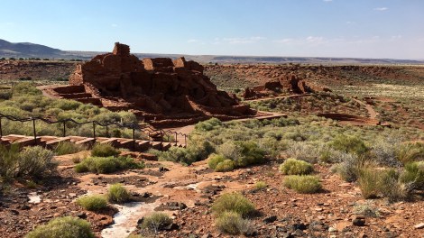 Wupatki a Wukoki Pueblo. Nedaleko (18mil) od sopky. Sídla dávných, předkolumbovských kultur, položená v nekonečných arizonských pláních. Na rozdíl od Montezumy, tady se dá jít přímo až k památkám.