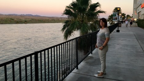 Kolem 19té hodiny přejíždíme řeku Colorado. Naposledy to bylo v Yumě, směrem do Arizony. Teď je to jižně od města Laughlin, směrem do Nevady. V řece je překvapivě hodně vody a je krásně čistá a modrá.