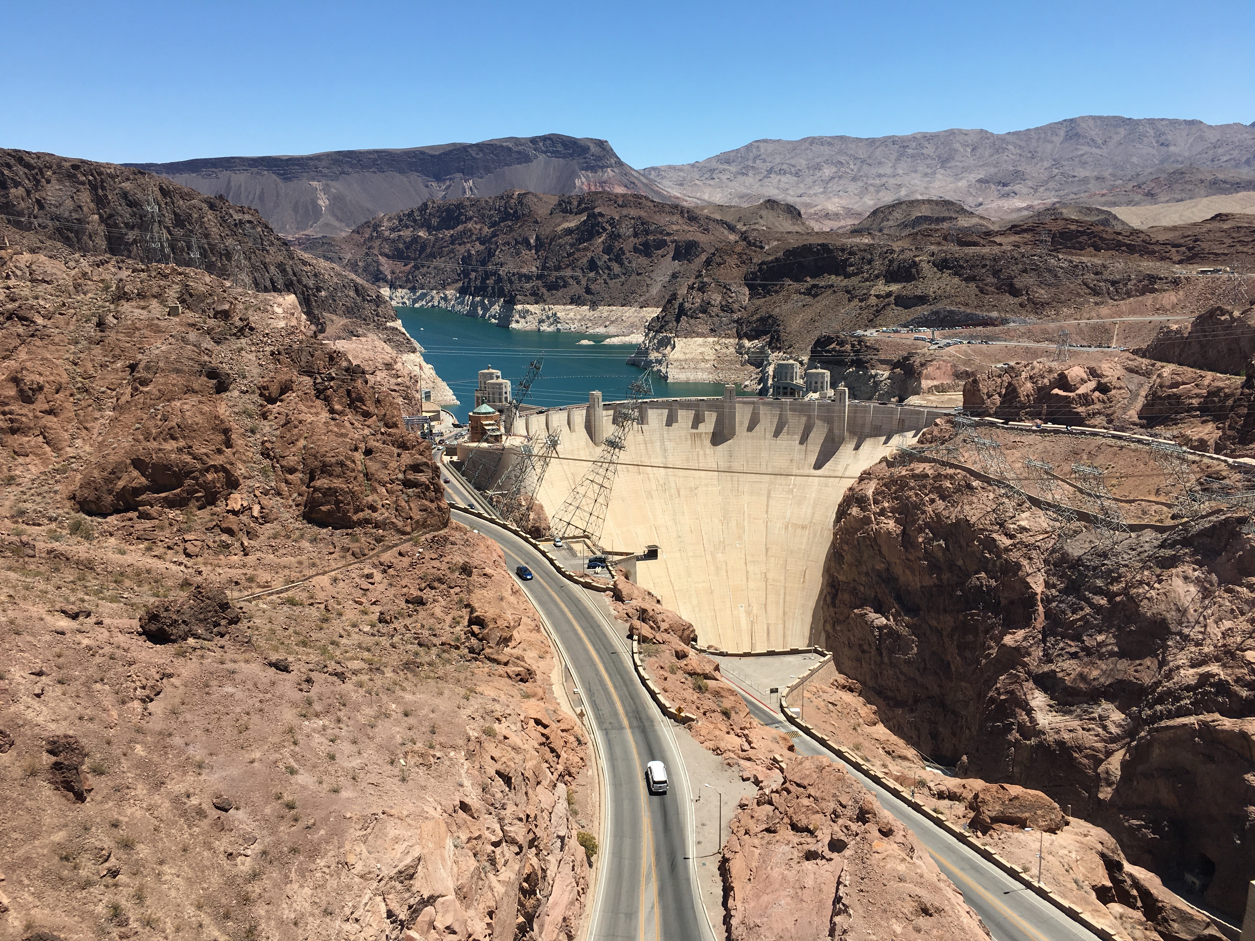 Jedeme se podívat na Hoover Dam. Ano, už jsme tam byli. Ale jednak jedeme okolo a druhak je to tak úžasná stavba, že to prostě nemůžeme vynechat. Popis našeho putování přehradou je prakticky totožný s rokem 2012, navíc jsme se zašli podívat na Mike O’Callaghan–Pat Tillman Memorial Bridge, ze kterého je na přehradu krásný výhled. A jak tak přecházíme a přejíždíme po přehradě sem a tam, vracíme se a zase odcházíme z Nevady do Arizony a zpět (to se neochodí)