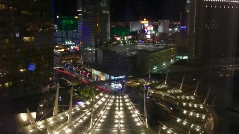 Vzhledem k tomu, že celou naši cestu doma předem připravuju, málokdy jsem pak na ní něčím opravdu překvapený. Tentokrát ale musím říct, že hotel Aria, ve kterém bydlíme, překonává veškerá očekávání a současně vím, že tohle se nedá popsat, to se musí vidět. Je to ten největší hotel, ve kterém jsem kdy bydlel a patrně taky nejlepší. Výhled z 19tého patra na světla Vegas je prostě nádherný.
