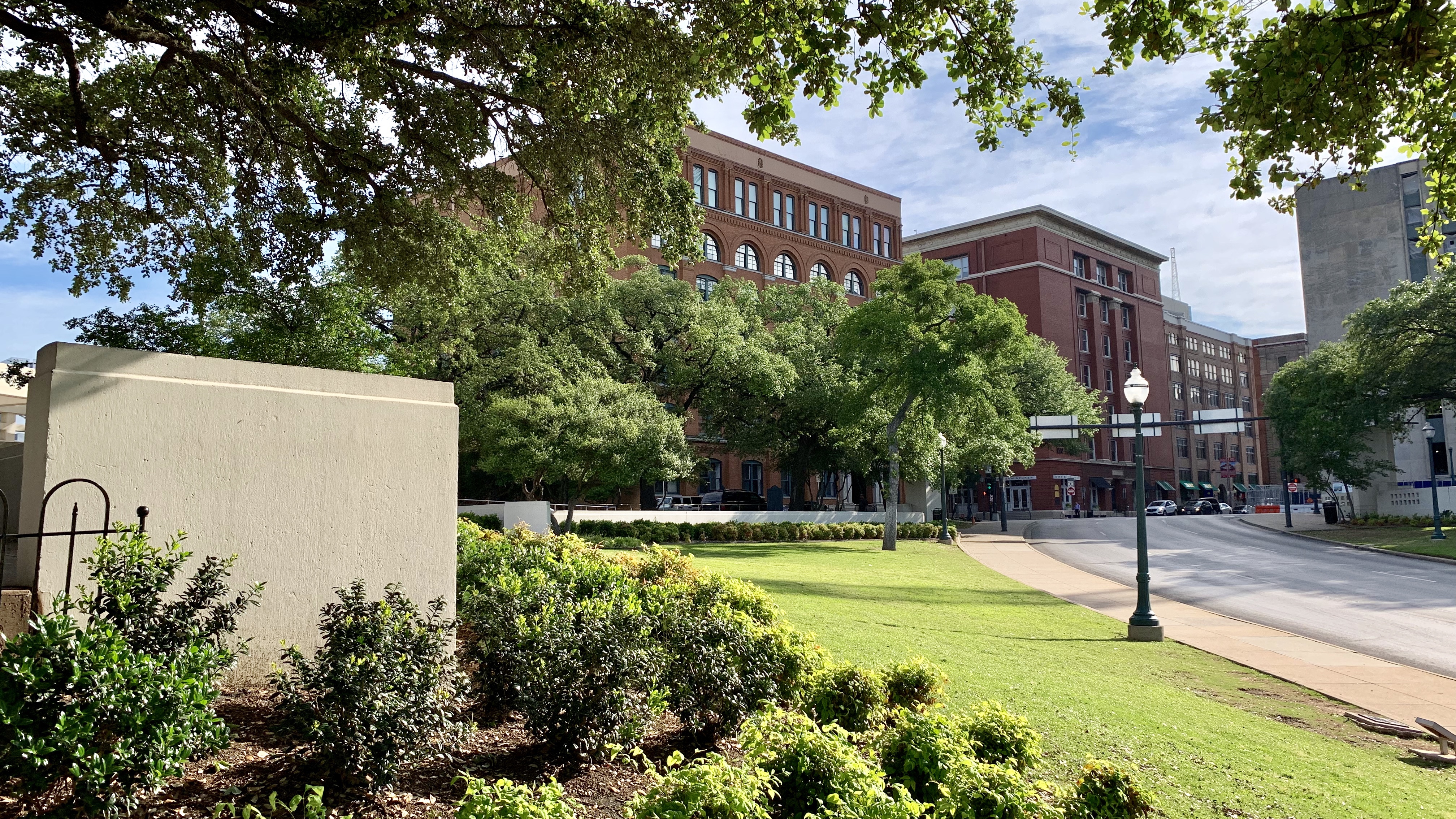 Sixth Floor Muzeum, které se celé věnuje návštěvě prezidenta JFK v Dallasu osudného dne 22. listopadu 1963, je pochopitelně taky otevřeno až od 10ti. Jedeme tedy na parkoviště za budovou muzea, kde necháme auto a jdeme prozkoumat okolí. Projdeme se kousek po Elm Street okolo míst, kde padly ony dva výstřely. Zajdeme i na návrší u silnice, kde měl stát údajný druhý střelec.