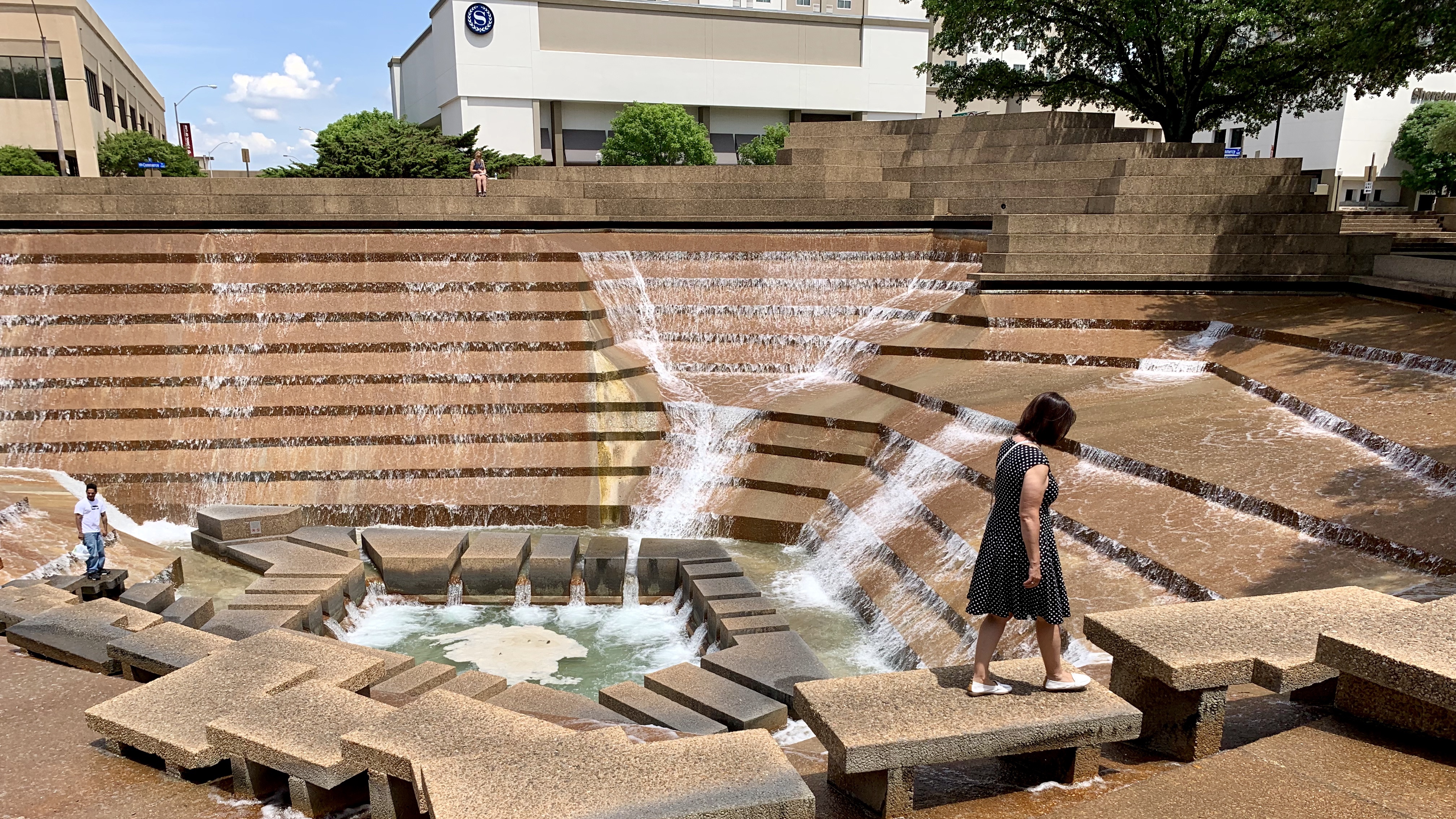 Nejprve zastávka na místních Fort Worth Water Gardens. Jsou to uměle vytvořená vodní díla, určená k rekreaci a odpočinku. V horkém dni, jako je ten dnešní, je to úplná oáza.