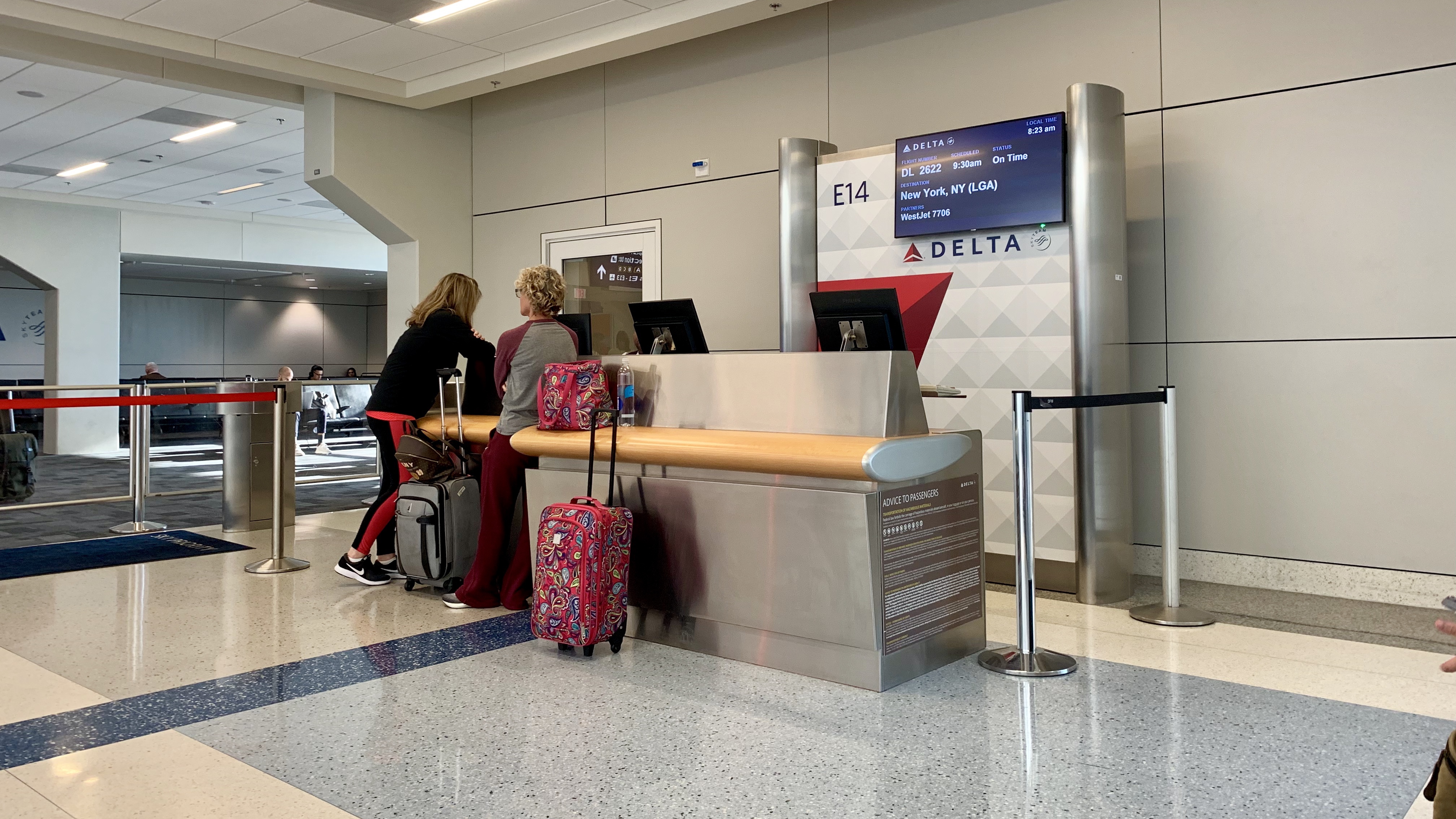 Vrátili jsme auto v půjčovně AVIS a autobus nás zavezl na terminál E, Delta Airlines. Protože letíme jen vnitrostátní let, kontroly na letšti jsou minimální, skoro žádné. Úředník na přepážce nás pochválil za náš východotexasský akcent (určitě to říká každému) a pak už salašíme na bráně E14. Máme nehorázných 90 minut do odletu.