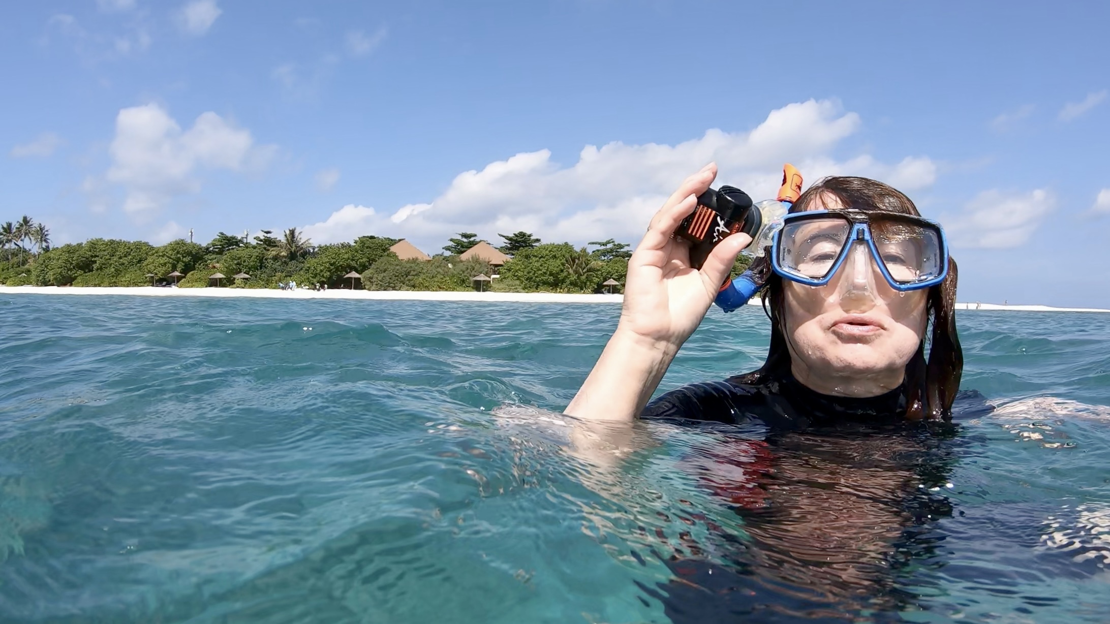Náš program se v průběhu dní také příliš nemění. A proč by taky měl, že jo? Většinu času trávíme s čumákem pod vodou, buď přímo “u baráku”, nebo na místním House Reefu. Z této bohulibé činnosti nás vytrhuje pouze “nutnost” čas od času navštívit restaurační zařízení a doplnit kalorie. Ve vodě jednomu vyhládne. Navíc, navzdory tomu, že jsme na relativně malém ostrově, každý den tu těmi opakovanými přesuny mezi bydlištěm, hospodou a mořem nachodíme více než 7 km naboso v hlubokém písku. Restaurací a barů je tu cca 10 rozesetých po celém ostrově (ještě jsme nebyli všude), takže je co prozkoumávat (např. ve kterém baru míchají lepší Pina Coladu).