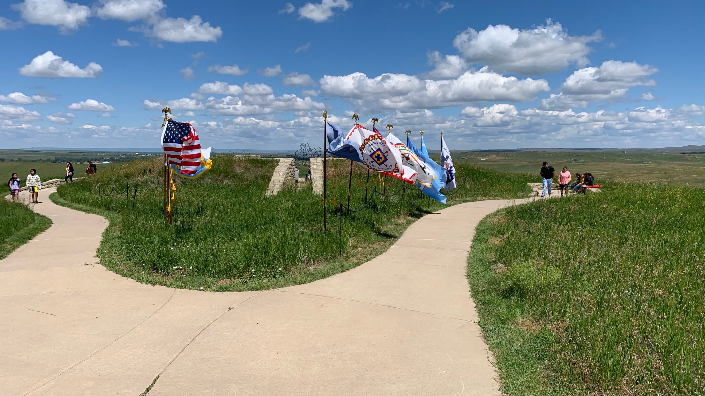 Za normálních okolností je to velmi málo navštěvované místo, ale dnešní významný den přilákal velké množství návštěvníků. Nejprve jedeme na parkoviště u samotného Seventh Cavalry Memorial. Už tam je hlava na hlavě, parkoviště plné a postupně zjišťujeme, že převažující většina návštěvníků je tvořena etnikem vítězné strany.