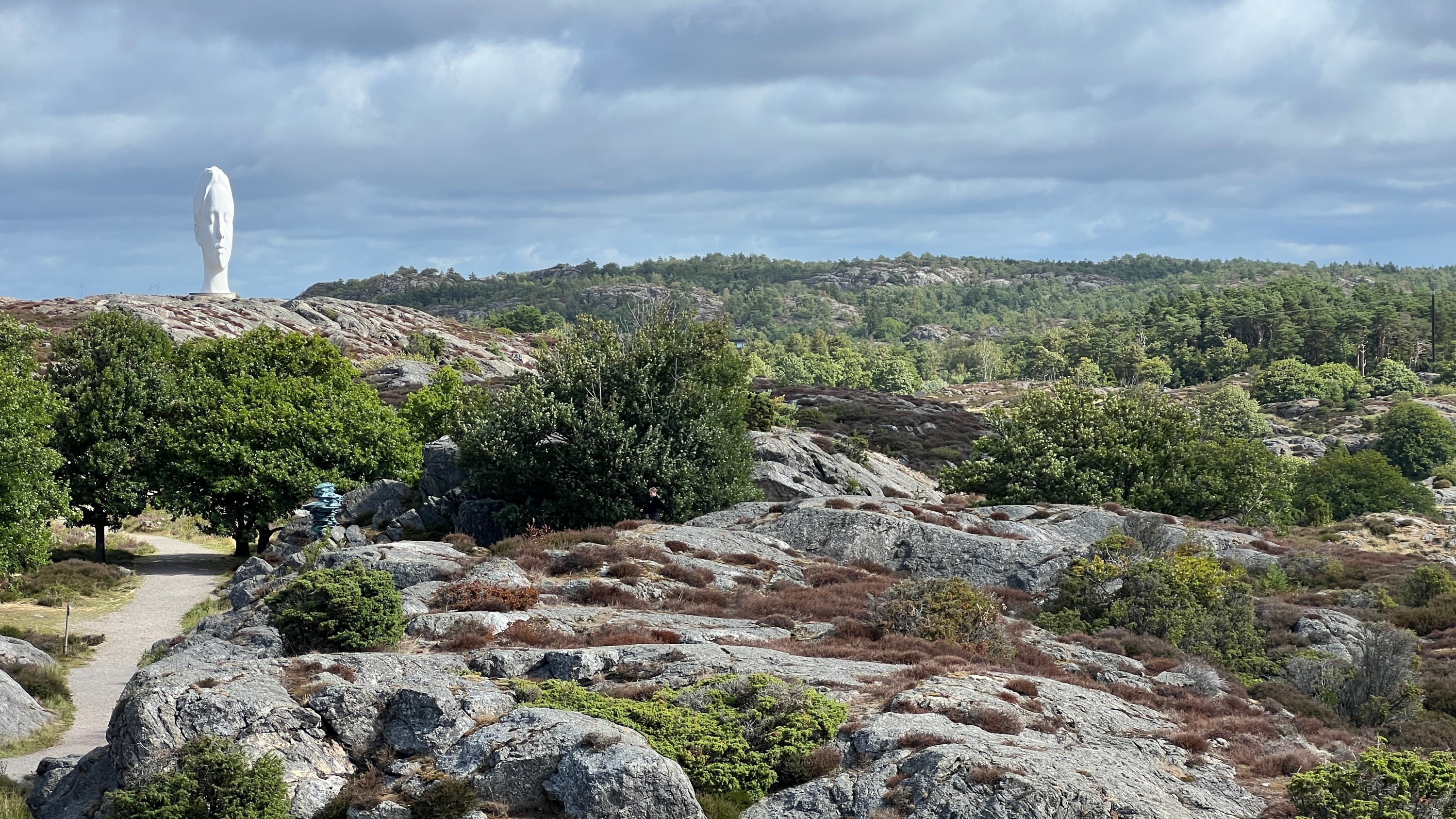 První větší zastávka je na místě zvaném Skulptur i Pilane. Je to název festivalu, který se každoročně koná v obci Tjorn. Tento festival je známý pro své venkovní expozice uměleckých děl pod širým nebem. Pro nás je to pěkná procházka nádhernou krajinou s výhledem do okolí a umělecká díla jsou jako bonus.