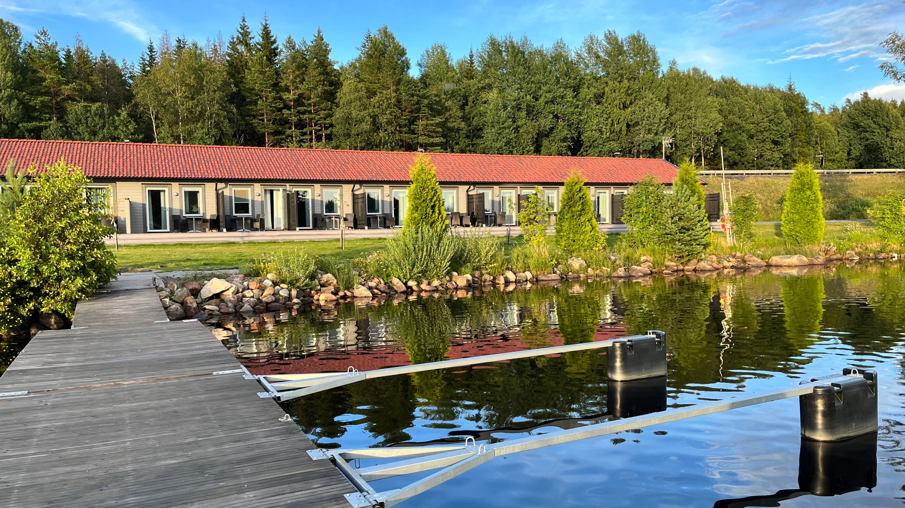 Protože je už zase kolem 20té hodiny, zamíříme do hotelu. Leží na břehu jezera, takže jsme zase u vody.