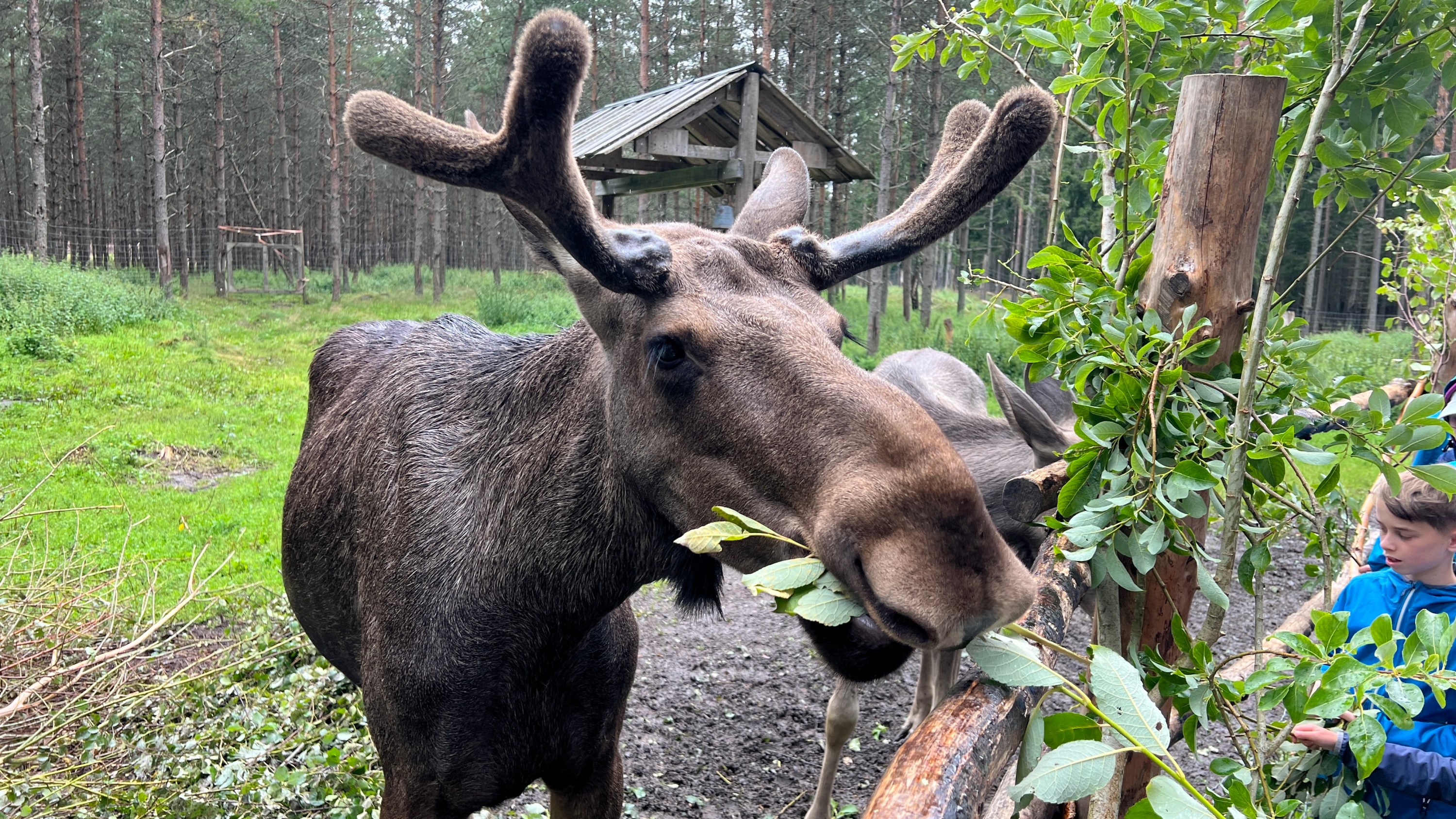 Po rytinách nás čekají živější exponáty. V 11 hodin probíhá krmení sobů v Dalslands Moose Ranch. Na tuhle atrakci se Dana těší už od Řícmanic a tak to rozhodně nemůžeme vynechat. Vše proběhlo nad očekávání a k losům jsme se dostali blíž, než jsme vůbec čekali. Strávili jsme tu asi 2 hodiny a byl to zážitek.