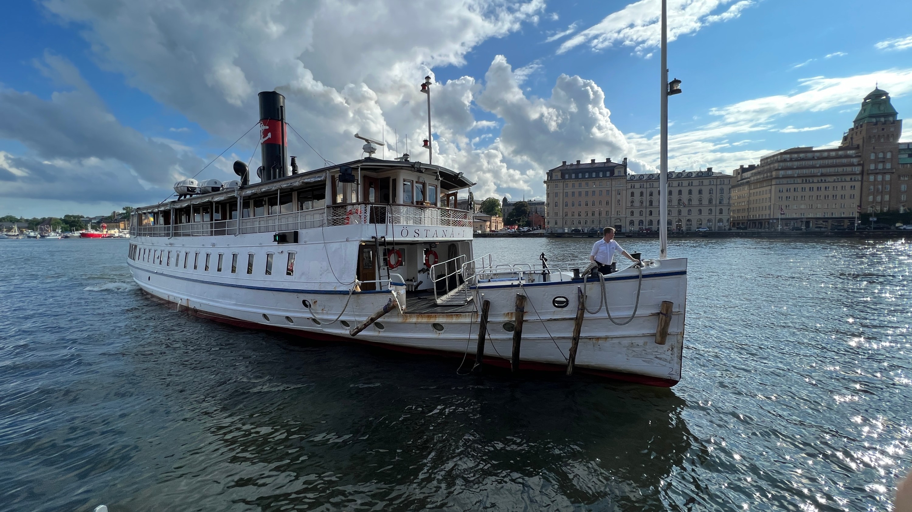 Před 17tou hodinou, to už pršet přestalo, znovu sedáme na autobus a jedeme na místo, odkud odjíždíme na naši poslední atrakci č. 4: Stockholm Archipelago Tour (viz. dnešní trasa). Nasedáme na loď, která mi silně připomíná Poirotovu Smrt na Nilu (pěkná, stylová, koloniální) a vyrážíme na skoro 3 hodiny obdivovat krásy souostroví kolem Stockholmu. Občas se s námi loď silně naklání, obzvláště při zatáčení a my jen doufáme, že se konstruktéři od dob Vasy přece jen poučili.