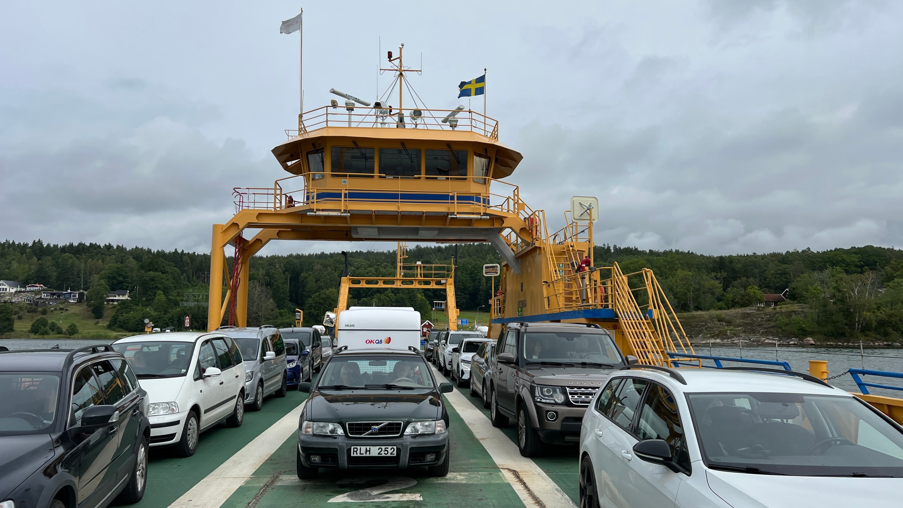 Během cesty se počasí umoudří a když jedeme na dalším trajektu, dá se i vystoupit z auta.