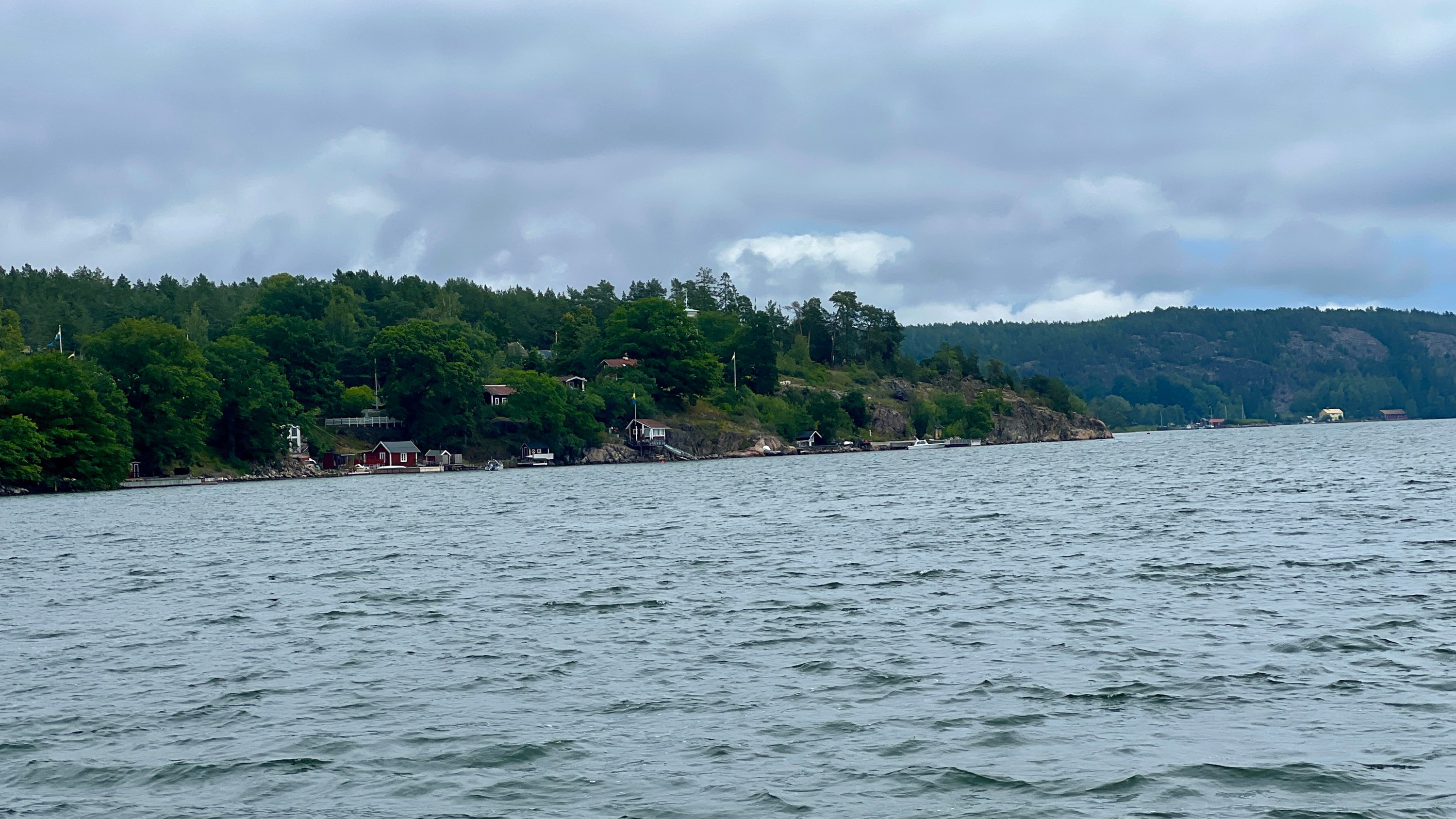 Dnes nás čeká pouze relativně dlouhý přejezd do městečka Kalmar na východním pobřeží bez významných atrakcí. Je to cesta velice pěknou krajinou, takže nám to všechny atrakce vynahradí. Jenže při odjezdu ze Stockholmu lije jako z konve a nic není kolem vidět. Chtěl jsem si cestou vyfotit halu Globen (jedeme kolem ní), ale byl to marný boj.