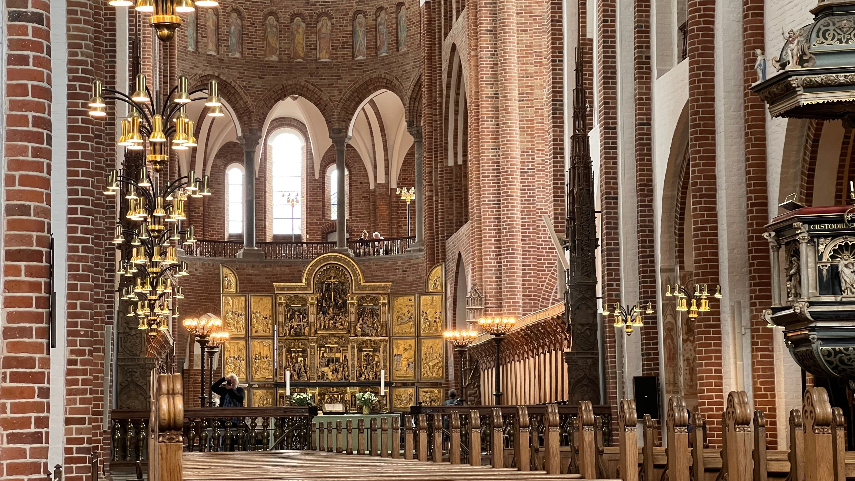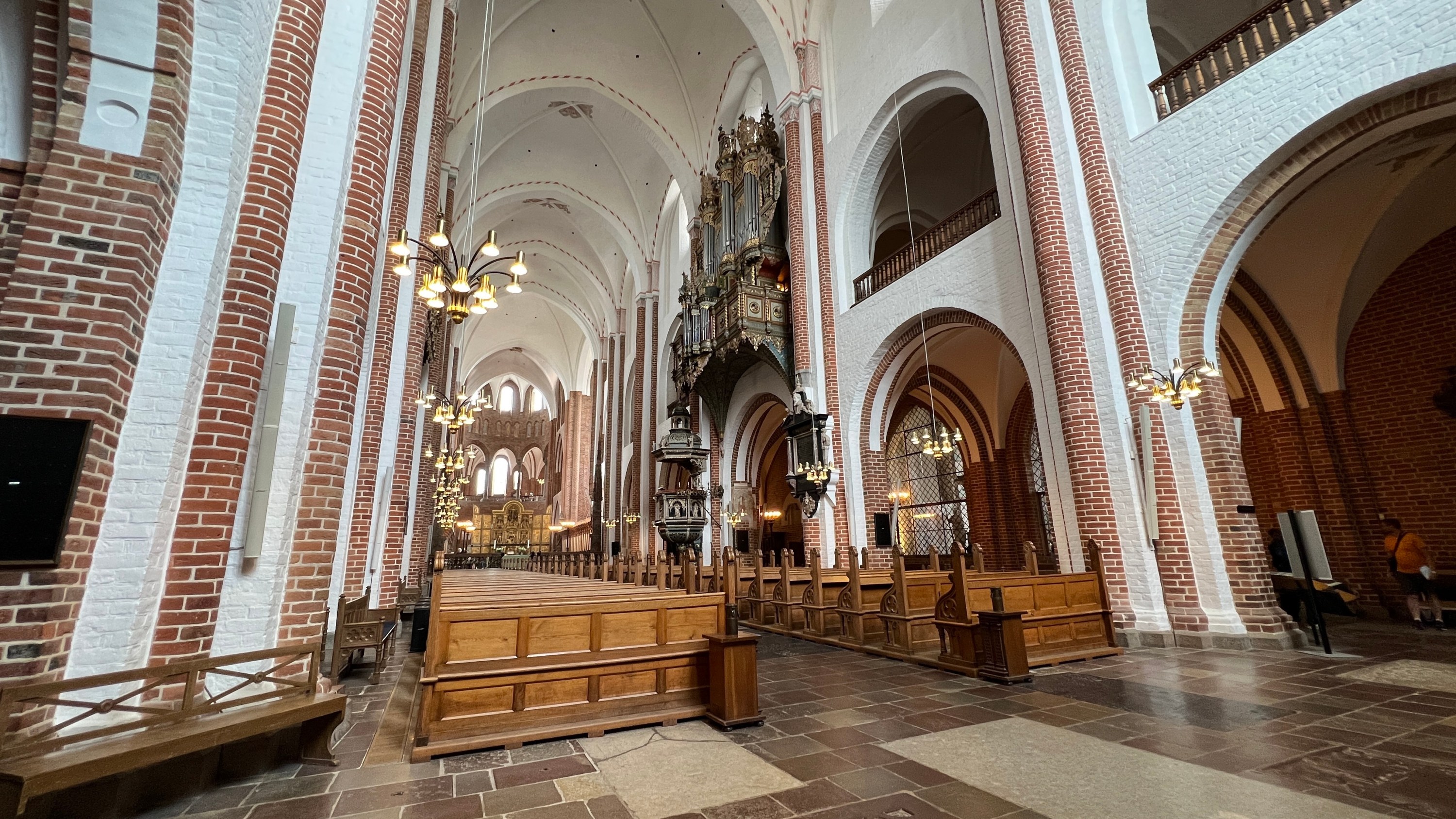 Pak už parkujeme u domkirke a jdeme se mrknout dovnitř. Je to nádherná gotická stavba z 12ti milionů cihel a místem odpočinku 39 členů dánské královské rodiny. Po celou dobu naší prohlídky si paní varhanice nacvičovala různé kusy na nedělní mši a nám to tak poskytlo moc pěknou kulisu.