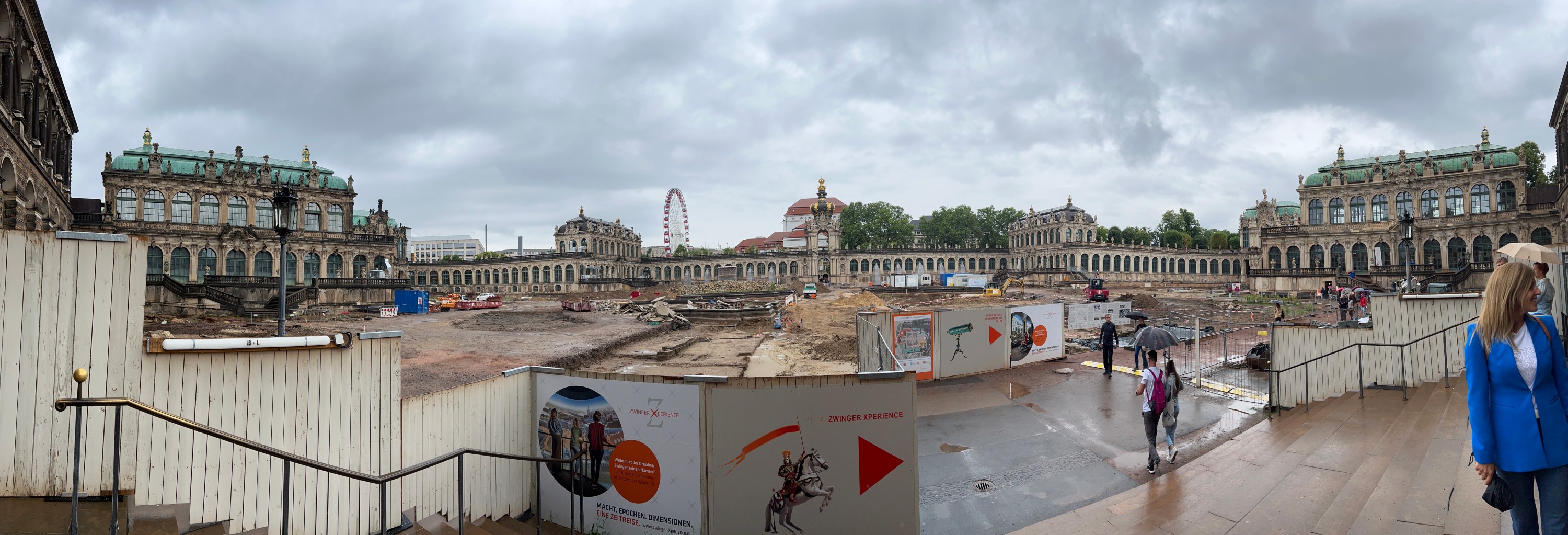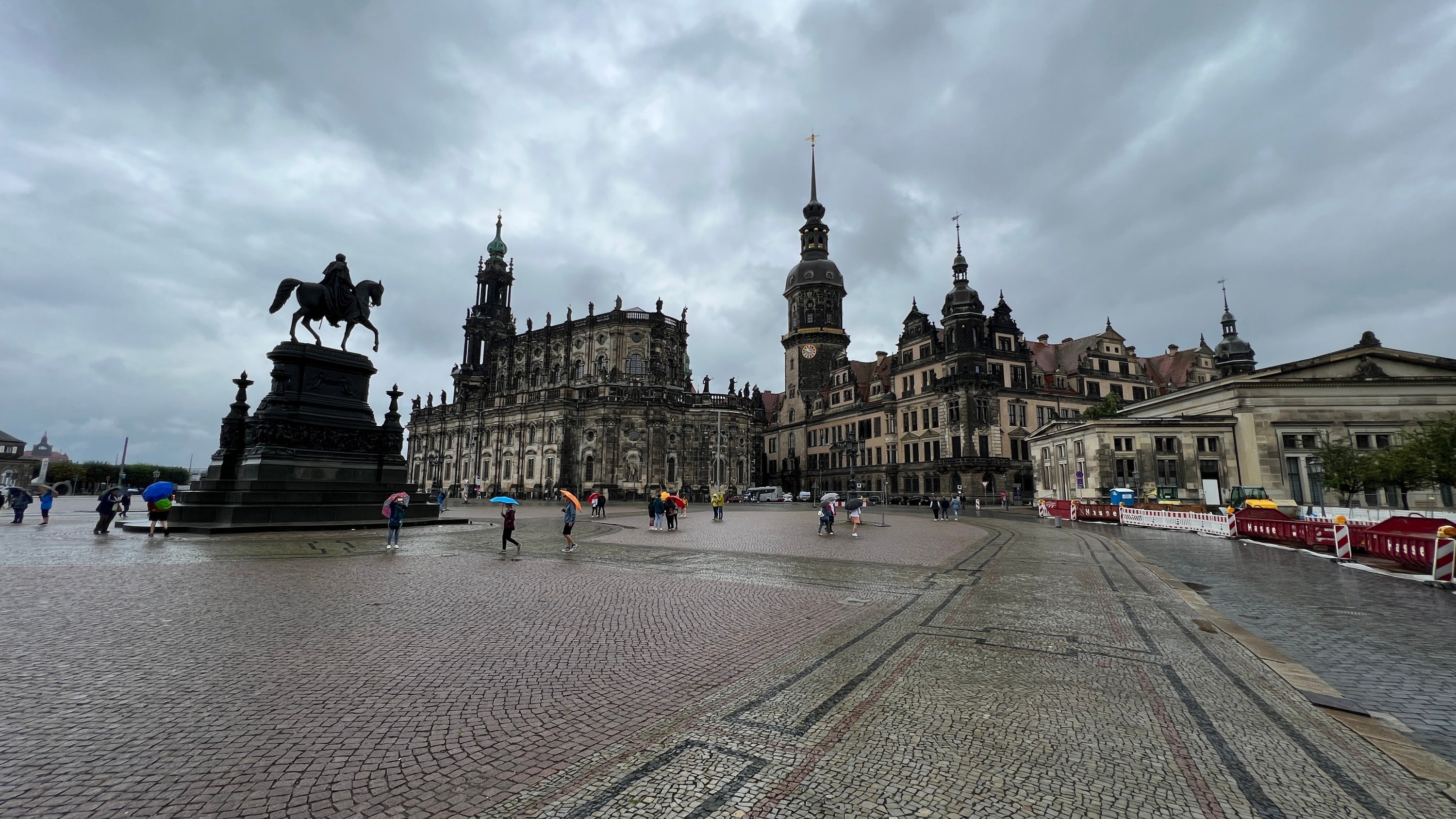 Projíždíme přes Drážďany a nakonec nám to nedá a ozve se efekt „když už jsme tady“. Takže i v dešti se jdeme projít okolo Zwingeru, abychom to alespoň trošku omrkli. Už jsem tu kdysi byl, moc si nepamatuju, ale připadá mi že je to víc rozbombardované, než dřív. A taky je to celé černé, asi by to chtělo trochu práce s wapkou.