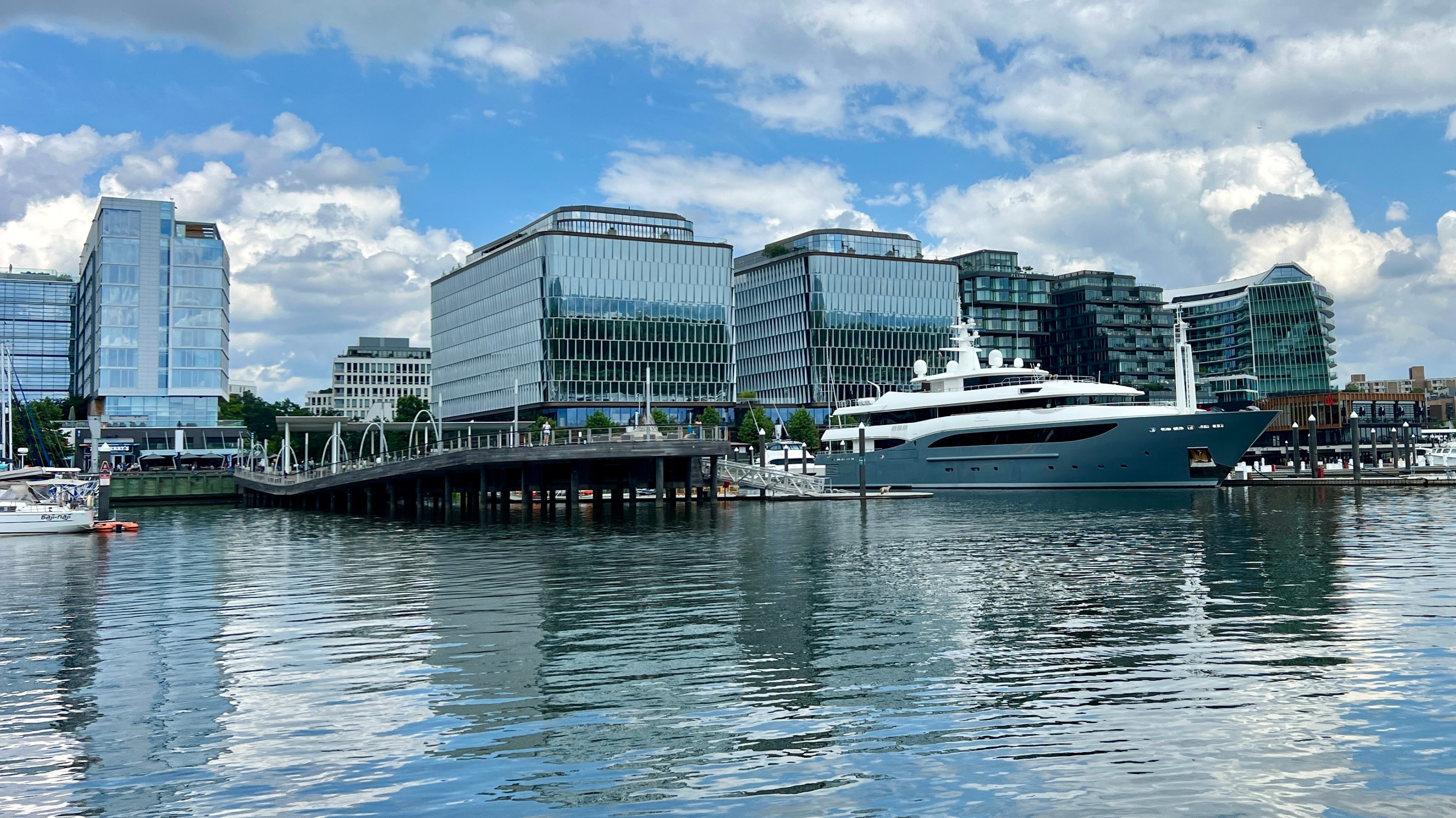 Po prohlídce centra se přesouváme do přístavu, kde si dáme malý oběd na zahrádce s výhledem na řeku. V 13:30 nasedáme na Potomac Water Taxi.