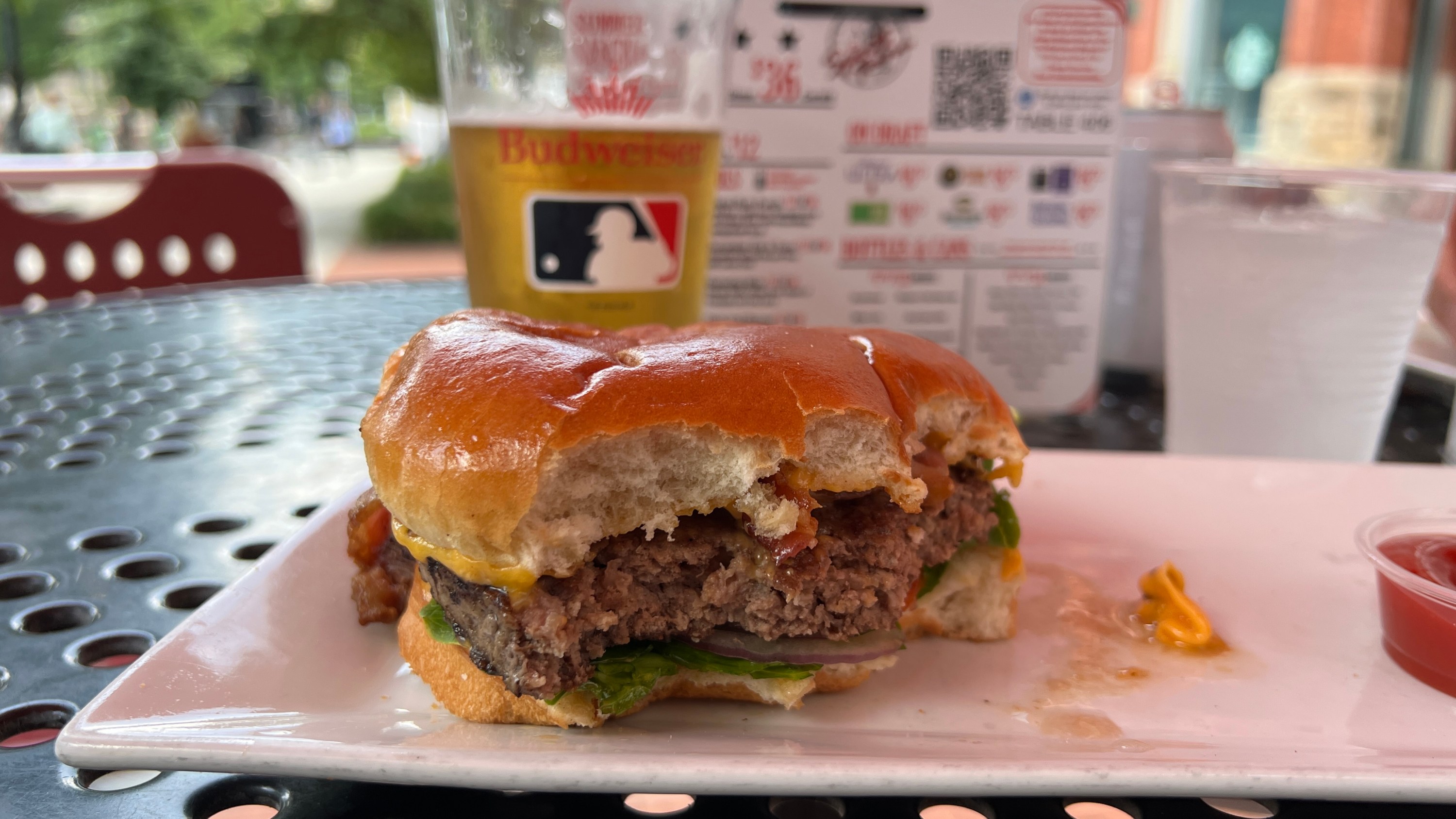 Cestou se zastavíme na malém posilnění a musím říci, že hambáč na zahrádce na Pennsylvánia Ave má svoje klouzlo.