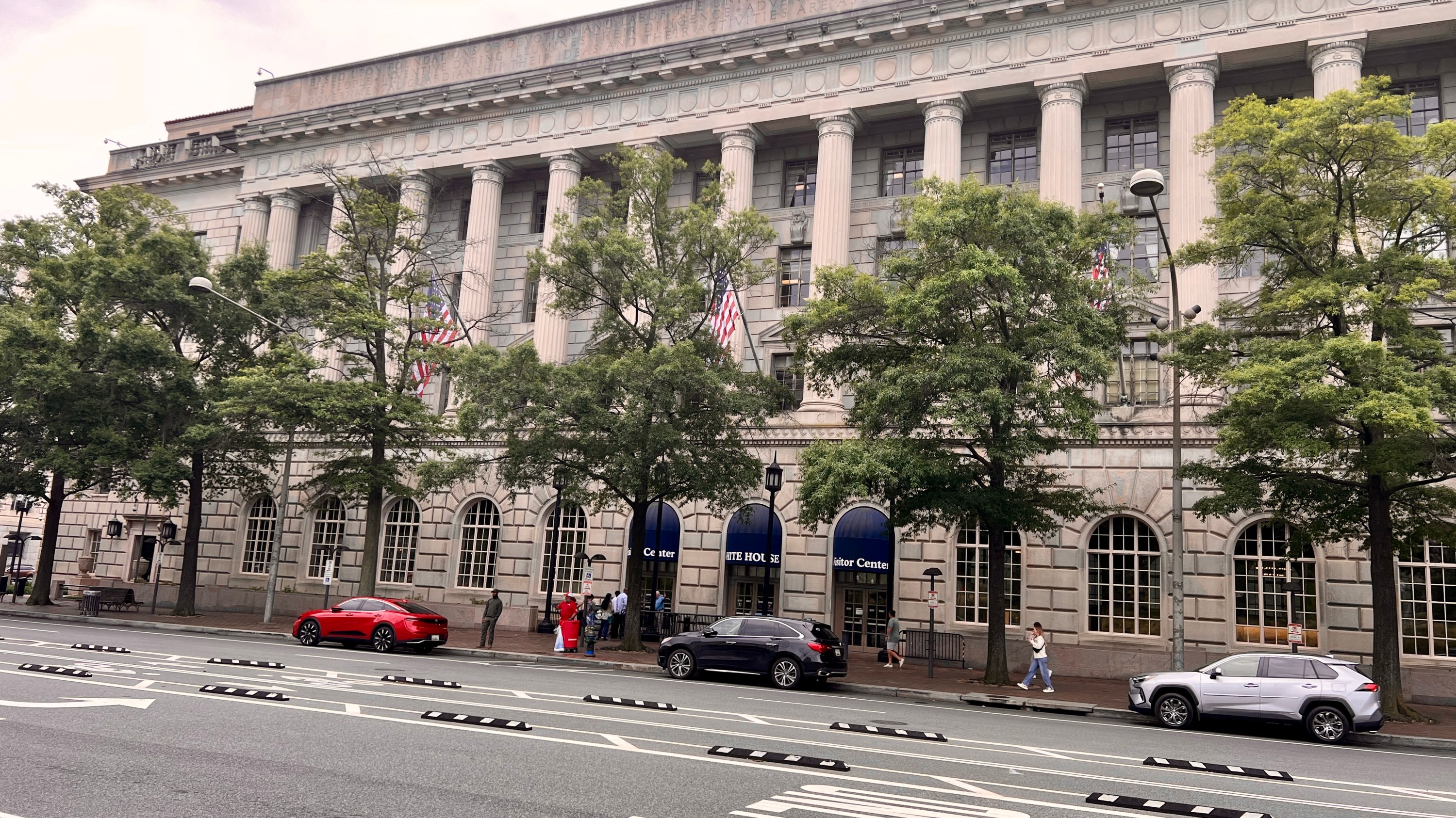 Na dnešní den jsme původně měli jiné plány, ale předpověď počasí není nakloněna pobytu v přírodě a v národním parku Shenandoah. Takže volíme variantu město, muzea a podobné atrakce. Ráno se chvíli díváme na přenos z Normandie (na Bidena, Macrona, Hankse a Spielberga) a pak jdeme na snídani.