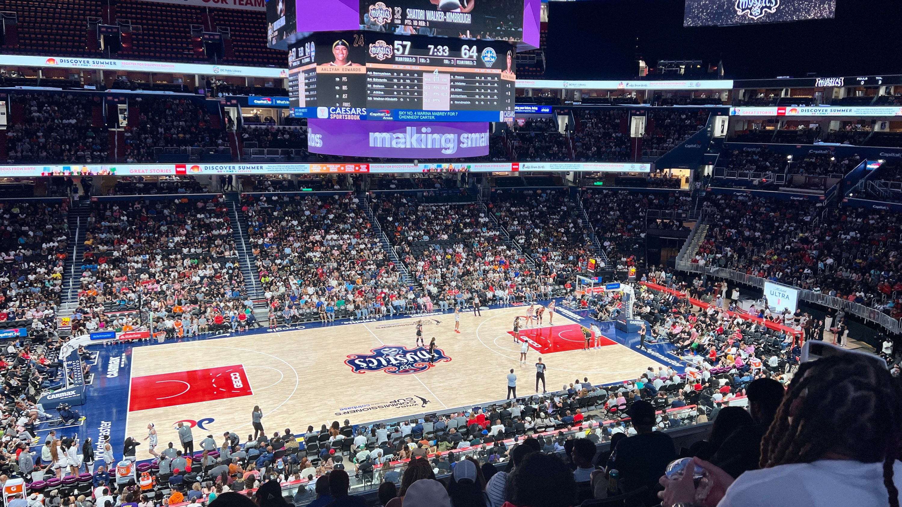 Závěr dne je opět ve znamení „poznávání američanů v jejich přirozném prostředí“. Jdeme se podívat na zápas WNBA (ženská verze NBA) mezi Washington Mystics a Chicago Sky. Zápas se hraje v Capitol One Arena, což je domovský stánek týmu NHL Washington Capitals, kteří už mají dávno po sezoně. Nádherný multifunkční stadion pro 22000 diváků. Střídavě sledujeme zápas a místní fanoušky a bavíme se. Zajímavé například je to, co jsme pozorovali už minulosti na zápasech baseballu. Lidi si moc nelámou hlavu s tím, kdy přijít do haly na zápas. My jsme byli na svých místech téměř hodinu před zahájenímm zápasu, celí natěšení. V 19:00, když se začalo hrát, byla hala zaplněná zhrubva z 10ti procent. A teprve zhruba při 3. čtvrtině zápasu bylo téměř plno. Proč to tak je ale netušime.