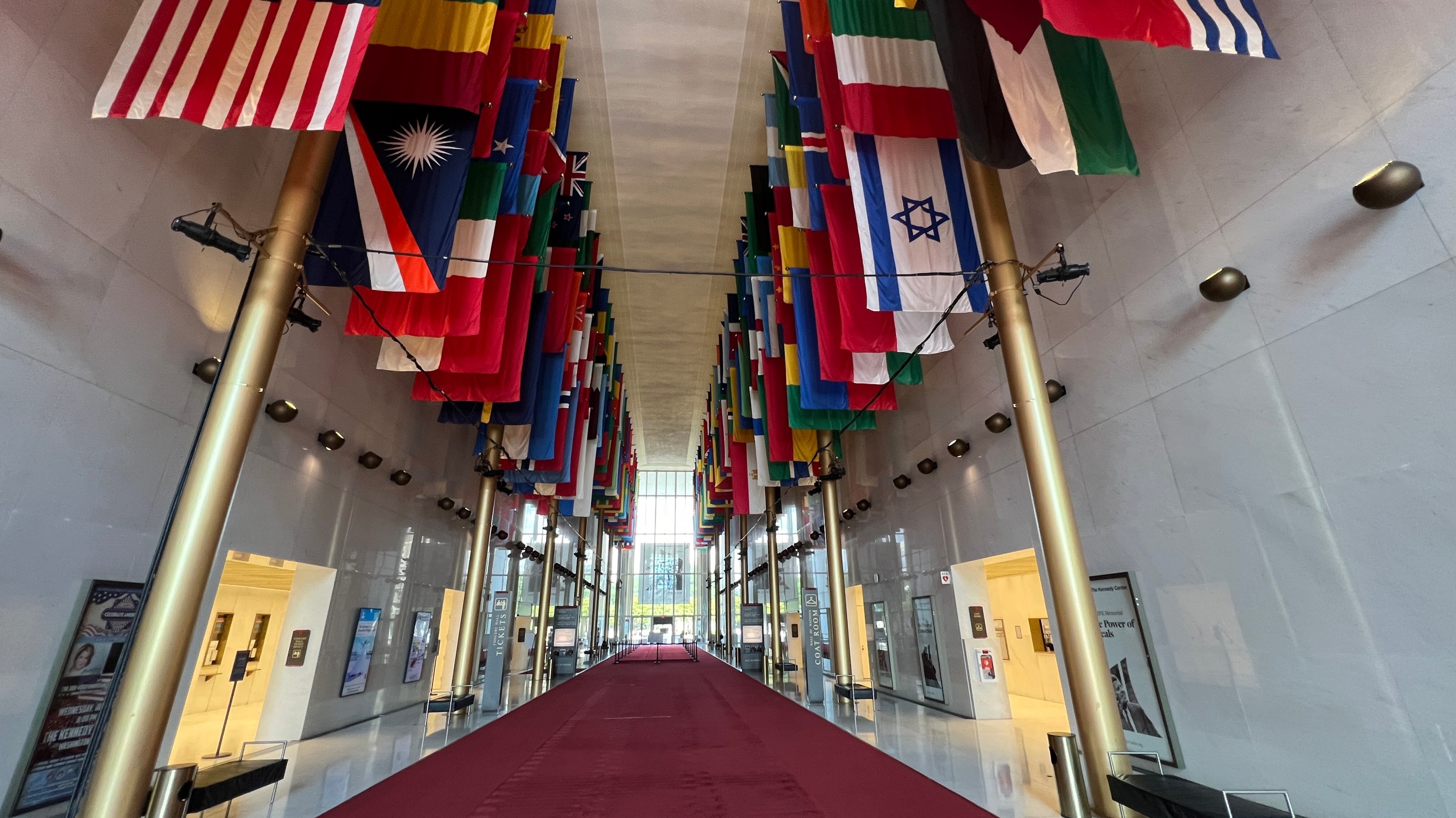 Pokračujeme dál a zaparkujeme v podzemních garážích JFK Centra. Je obrovské a úplně liduprázdné. Projdeme si jen malou část budovy, nakoukneme do hlavní lobby a pak se ještě na skok zastavíme u sousedního objektu: komplexu budov Wattergate.