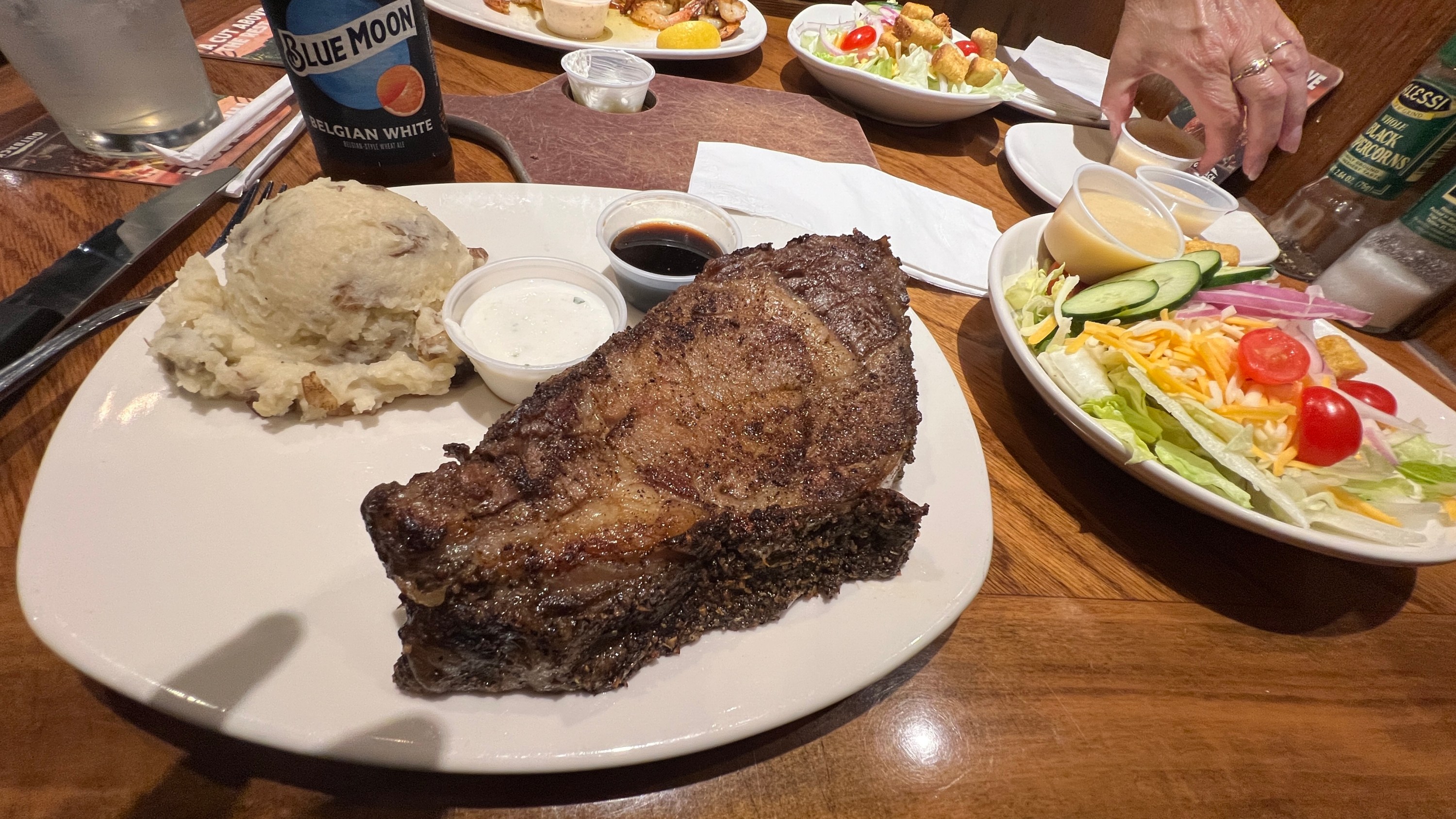 Pro dnešek toho bylo už dost a jdeme to spláchnout a zajíst do dalšího oblíbeného podniku: Outback Steakhouse. Dal jsem si 16oz steak a je mi zase veseleji.